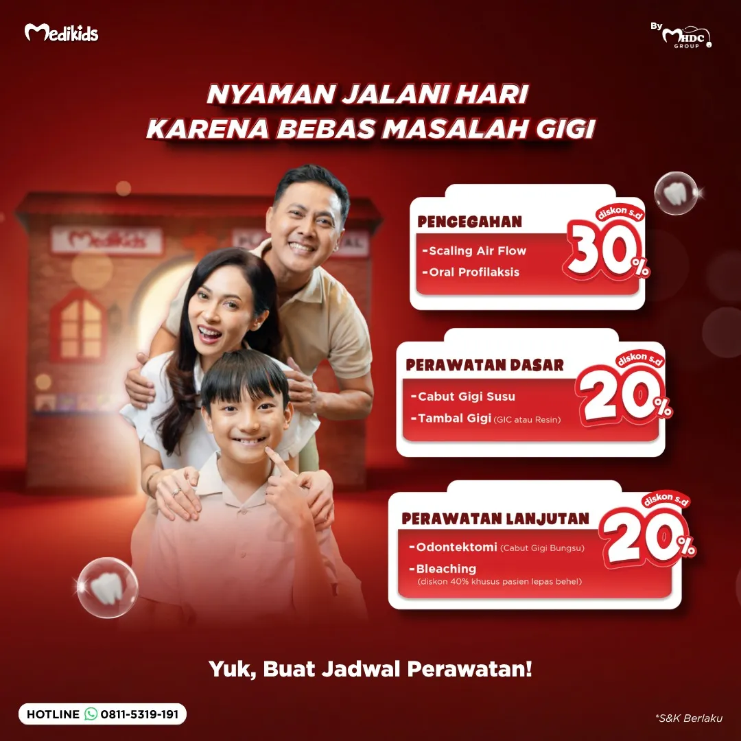 7. Berlaku di Medikids cabang tertentu (Padang, Jabodetabek, Palembang, Semarang, Wakaf Surabaya, Makassar, Karawang, Bandung, Cilegon)